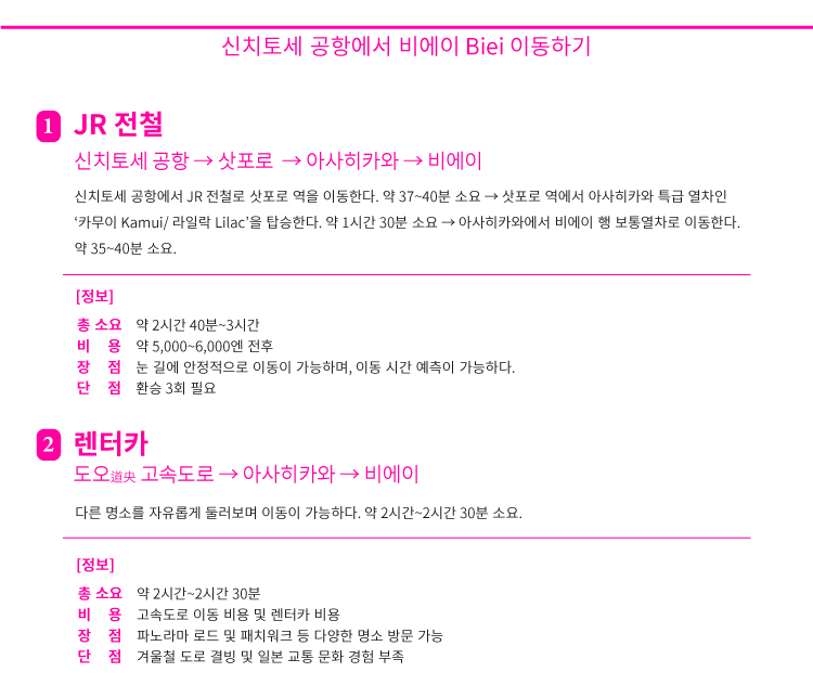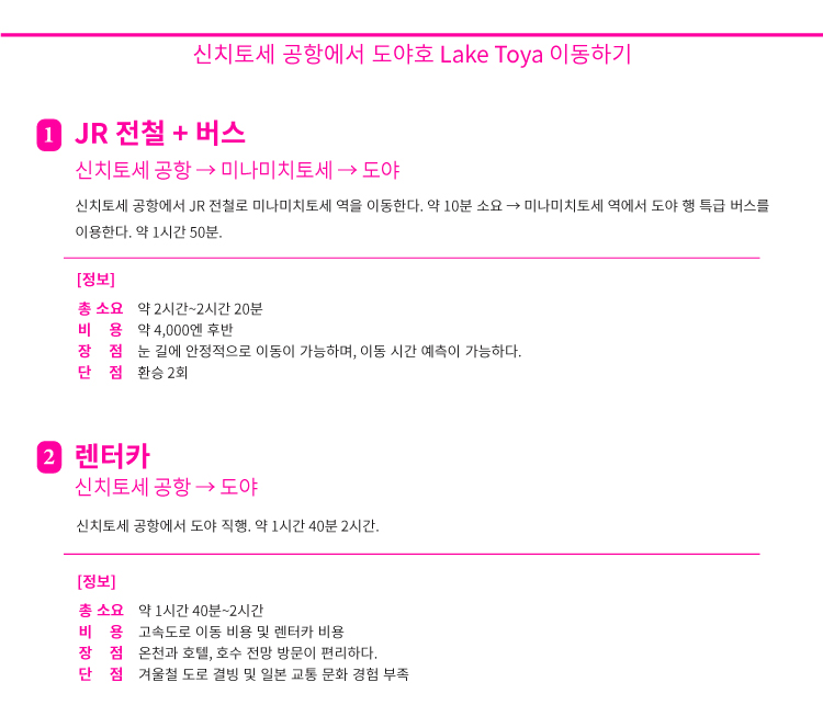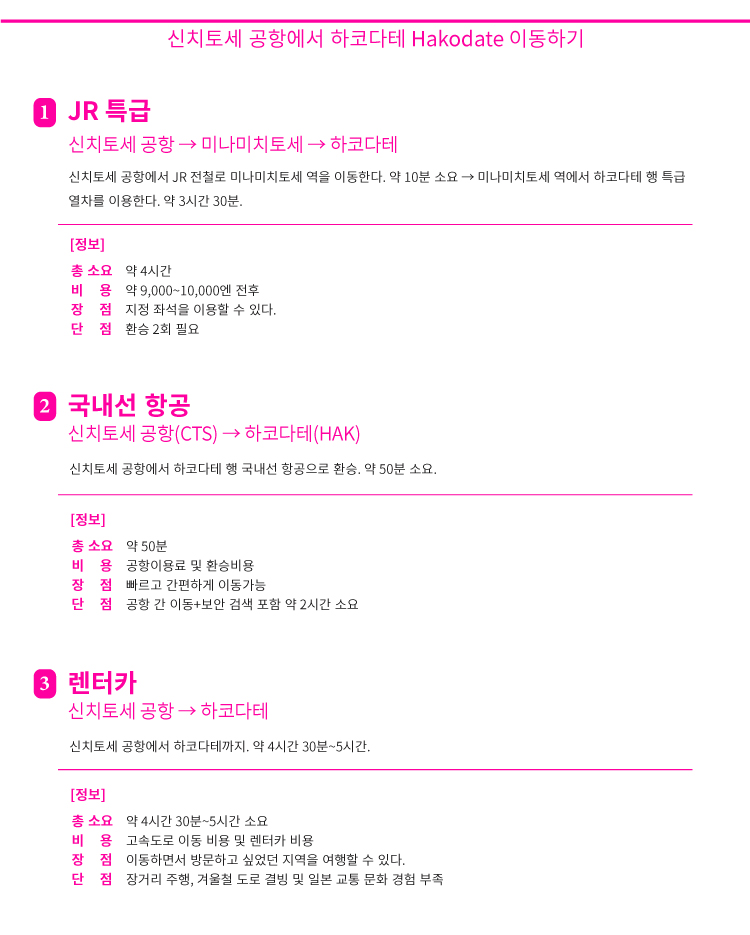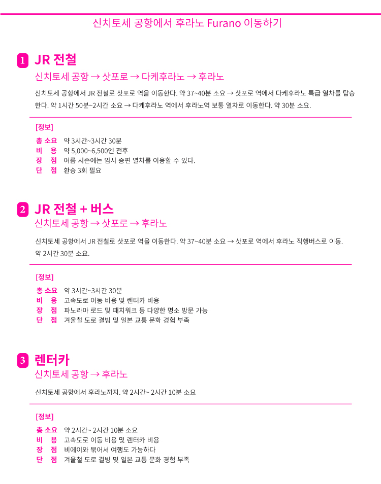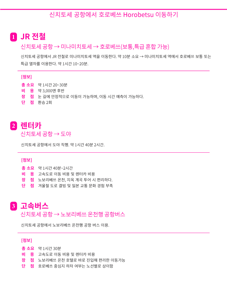신치토세 공항에서 다른 지역 이동 루트 QR